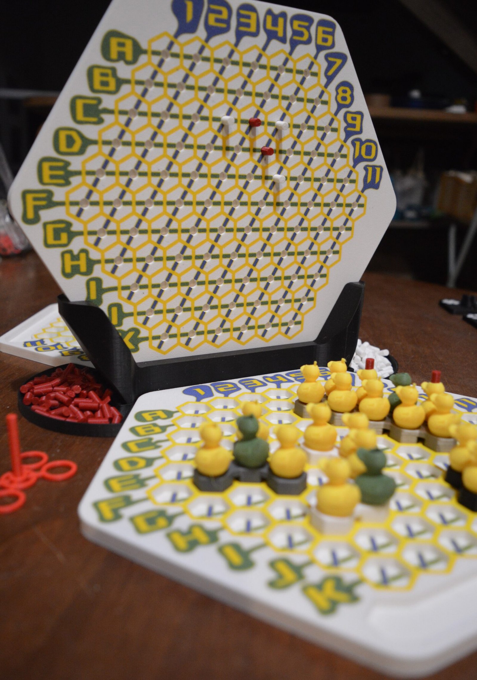 BattleDucks est un jeu de stratégie indépendant inspiré des jeux de bataille navale classiques, repensé pour un plateau hexagonal et entièrement imprimé en 3D.