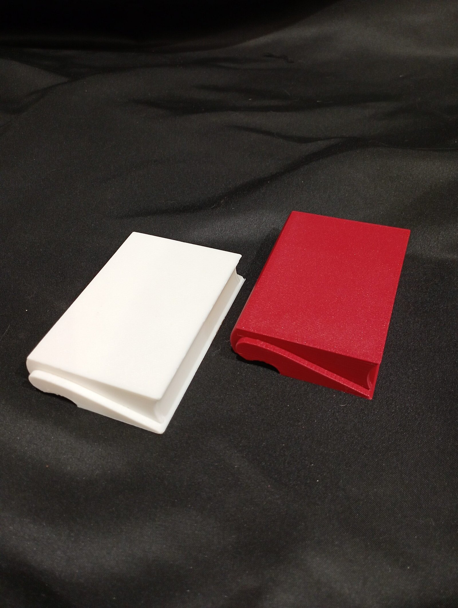 Porte cartes en forme de livre, s'ouvre et se positionne directement avec les cartes en place.